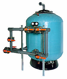 Larger sand filters commonly have separate valve arrangements rather than the multi-port valves.